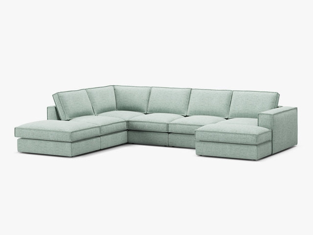 Il rivestimento in tessuto strutturato Babel colore mint presenta un effetto multicolore con trama visibile. Inoltre, è morbido al tatto e altamente resistente all’usura, come confermato dal test Martindale da 90.000 cicli. Grazie alla tecnologia Easy to Clean, il tessuto è idrofobo; di conseguenza, i liquidi restano in superficie e possono essere rimossi facilmente. In più, il tessuto è traspirante, certificato Oeko-Tex e resistente alla sigaretta, rendendolo perfetto per famiglie con bambini o animali domestici. Pertanto, il divano è elegante, funzionale e semplice da mantenere nel tempo.