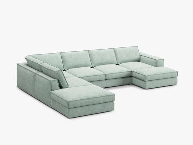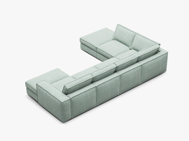 Il divano Pola si distingue per le sue linee pulite e per la forma avvolgente. Inoltre, la configurazione panoramica offre molto spazio per distendersi, rilassarsi o ospitare amici e familiari. Di conseguenza, il divano è adatto sia al relax quotidiano sia a momenti di socializzazione. Tuttavia, mantiene sempre un aspetto ordinato grazie ai bordi ben definiti. In più, la disposizione modulare consente di adattarlo facilmente alle esigenze della stanza.