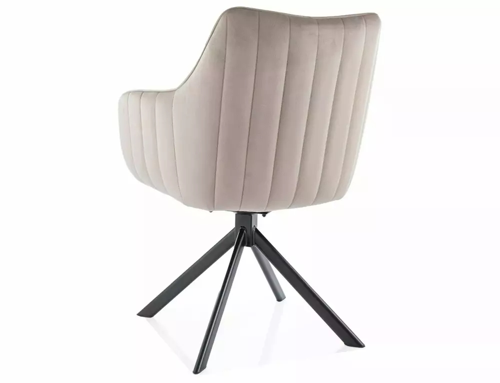 Sedia Azalia in velluto Bluvel con rotazione automatica 180° – colore beige scuro e struttura in metallo nero opaco